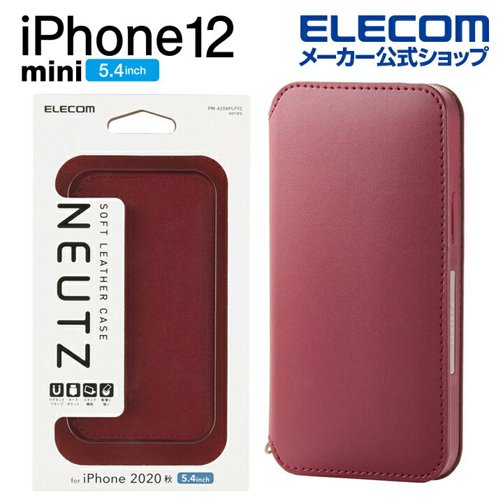 エレコム iPhone 12 mini 用 レザー ケース NEUTZ 磁石付き 手帳型 アイフォン 12 ミニ 新型 iPhone12 mini iPhone 2020 5.4 インチ レザー ケース カバー 磁石付き レッド PM-A20APLFY2RD