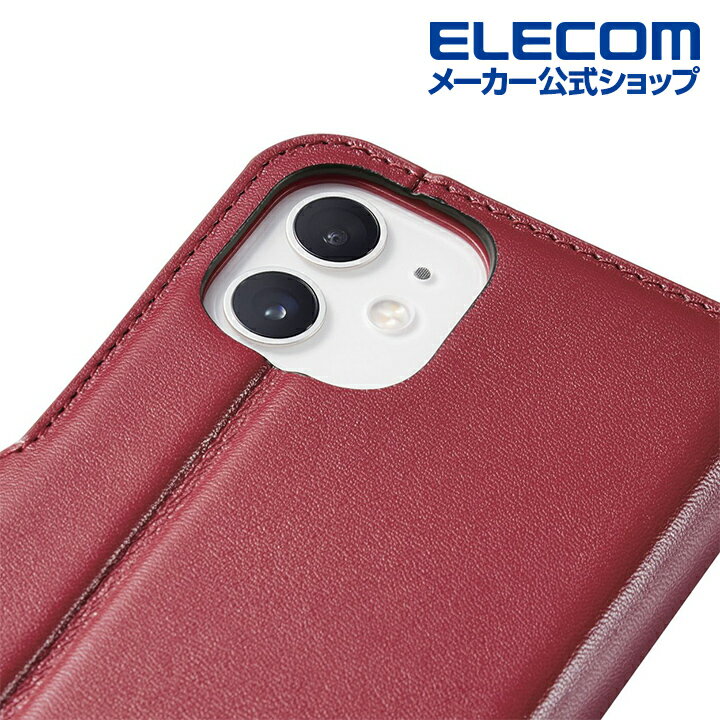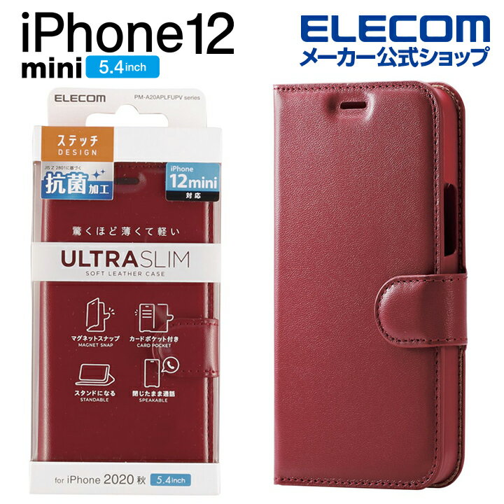 エレコム iPhone 12 mini 用 iPhone 12 mini レザー ケース UltraSlim 磁石付き ステッチ 抗菌 手帳型 アイフォン 12 ミニ レザーケース 手帳型 UltraSlim 薄型 磁石付き ステッチ 抗菌 レッド PM-A20APLFUPVRD
