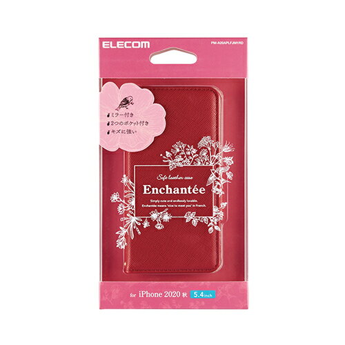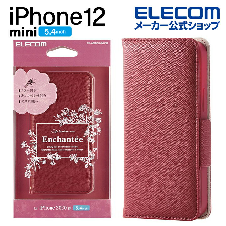 エレコム iPhone 12 mini 用 レザー ケース Enchante'e 磁石付き 手帳型 アイフォン 12 ミニ 新型 iPhone12 mini iPhone 2020 5.4 インチ レザー ケース カバー レッド PM-A20APLFJM1RD